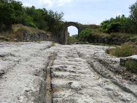 Если следовать по грунтовой дороге от с. Красный Мак (через разрыв в гряде скал), то можно добраться до "пещерного города" Эски-Кермен.